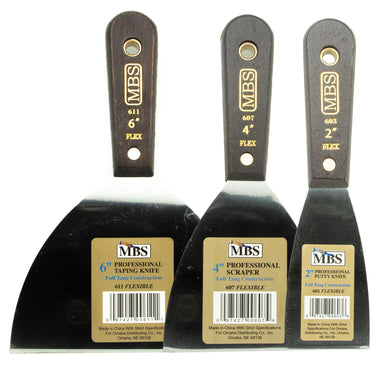 MBS 3pc Metal Putty Knife, Flexible Blade 2", 4", 6" Putty Knives
