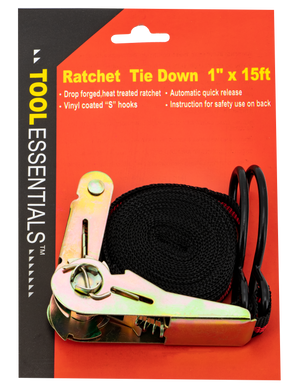 Tool Essentials 15ft x 1 Inch Ratcheting Tie Down Ratchet Strap
